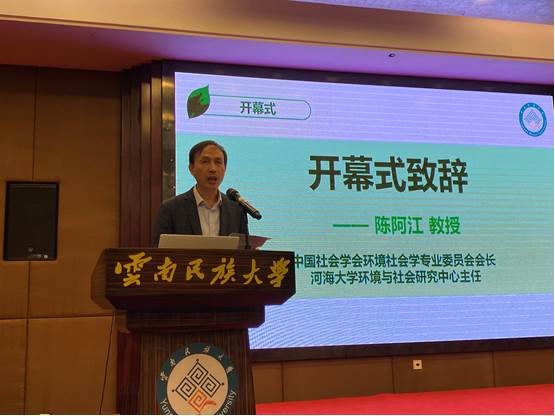 11月7日上午举行的大会开幕式上,云南民族大学校长张桥贵教授,中国社会学会副会长、教育部学位与研究生教育司司长洪大用教授,中国社会学会环境社会学专业委员会会长、yl23411永利环境与社会研究中心主任陈阿江教授先后致辞。陈阿江教授在致辞中回顾了环境社会学专委会的发展历程、第五届中国社会学会环境社会学专业委员会以及2016年以来开展的主要工作,并期待中国环境社会学取得更好的发展成绩。
