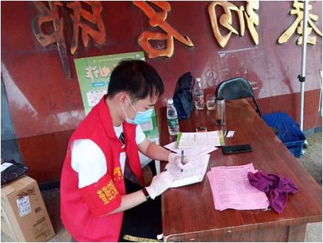 在看到县团委的公众号上招募志愿者的信息后,杨璇马上填写了报名表,决定积极参与到防控疫情的行动中。2021年8月7日,杨璇来到了县城里的紫庭豪宅小区,协助社区核酸监测点位的工作人员进行人员引导和秩序维护,按照疫情防控的要求对每位居民进行排查登记和体温检测工作,此外还面向社区进行防疫健康知识的宣传。