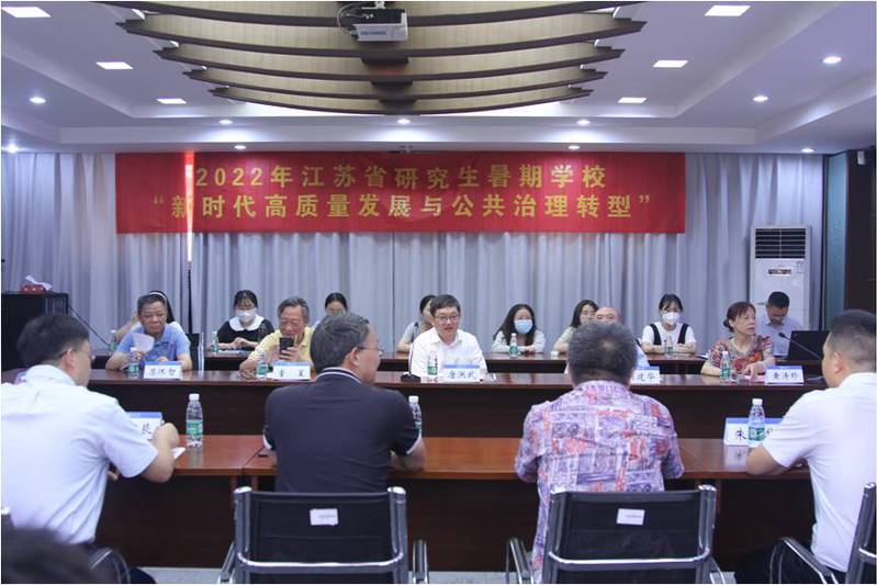 2022年8月6日,2022年江苏省研究生“新时代高质量发展与公共治理转型”暑期学校在yl23411永利隆重开班。此次暑期学校由江苏省管理学类研究生教育指导委员会主办,永利yl23411集团承办。yl23411永利党委书记、中国工程院院士唐洪武出席开班仪式并讲话。