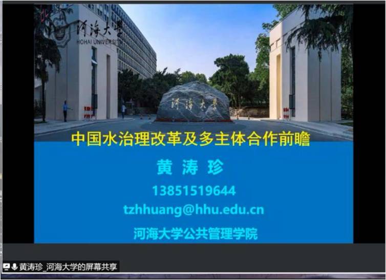 8月14日上午,江苏省研究生“新时代高质量发展与公共治理转型”暑期学校第十五场课程“中国水治理改革及多主体合作前瞻”顺利开课。课程主讲人为永利yl23411集团黄涛珍教授,主持人为永利yl23411集团朱新华教授,来自海内外50余所高校100名学员以及公共管理学院师生参加。授课开始前,朱新华教授对黄涛珍教授出席暑期学校表示热烈欢迎,并向暑期学校师生介绍了黄涛珍教授的研究领域和研究成果。