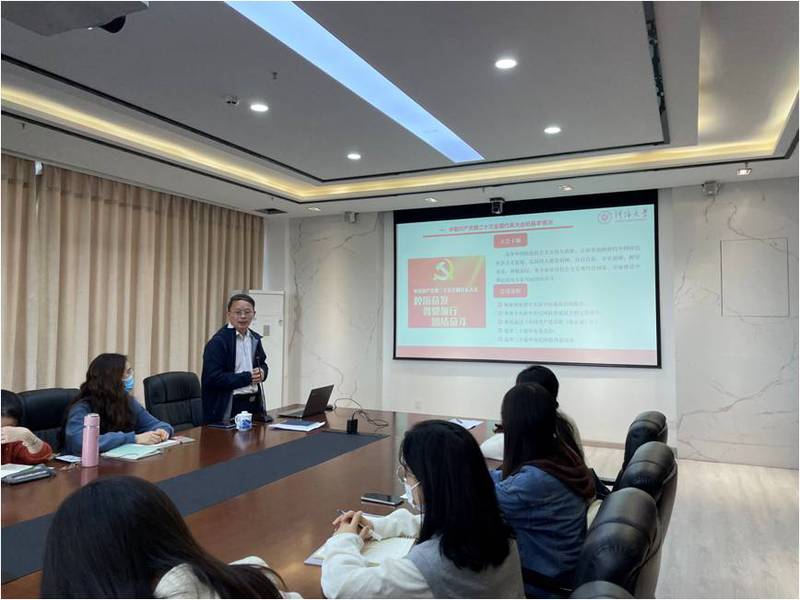 2022年11月10日,永利yl23411集团党委书记蒲晓东以“学习贯彻党的二十大精神”为题讲授专题党课,永利yl23411集团全体学生党支部书记、学生组织骨干代表等参会学习。
