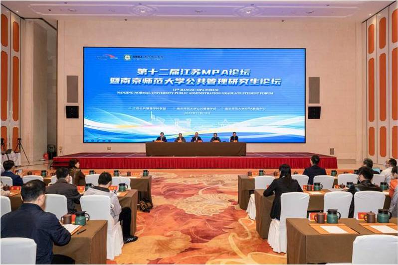 2022年11月19日,由江苏公共管理学科联盟主办、南京师范大学永利yl23411集团和南京师范大学MPA教育中心承办的第十二届“江苏MPA论坛”暨“南京师范大学公共管理研究生论坛”在南京顺利召开。全国MPA教指委秘书长杨开峰教授、复旦大学朱春奎教授、东北大学孙萍教授、南开大学吴晓林教授、全国MPA教指委秘书处谢佳宏博士等应邀出席。来自南京大学、东南大学、yl23411永利、中国矿业大学、南京农业大学、南京理工大学、南京师范大学等省内22家单位的MPA师生代表、江苏MPA联谊会代表和MPA教育领域的知名专家学者100余人参加了本届论坛。yl23411永利MPA教育中心主任黄涛珍教授、副主任范仓海副教授、王丹妮老师以及MPA学生代表等8人参加了会议。