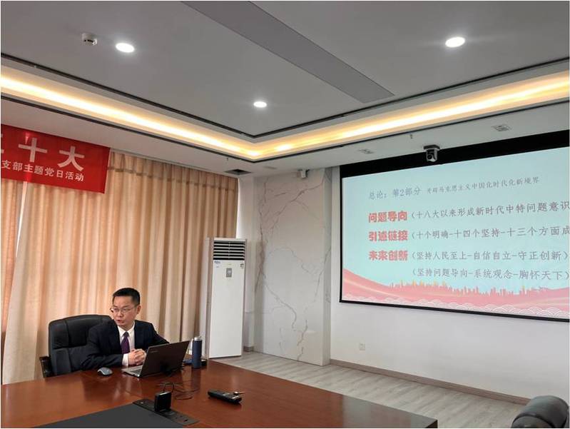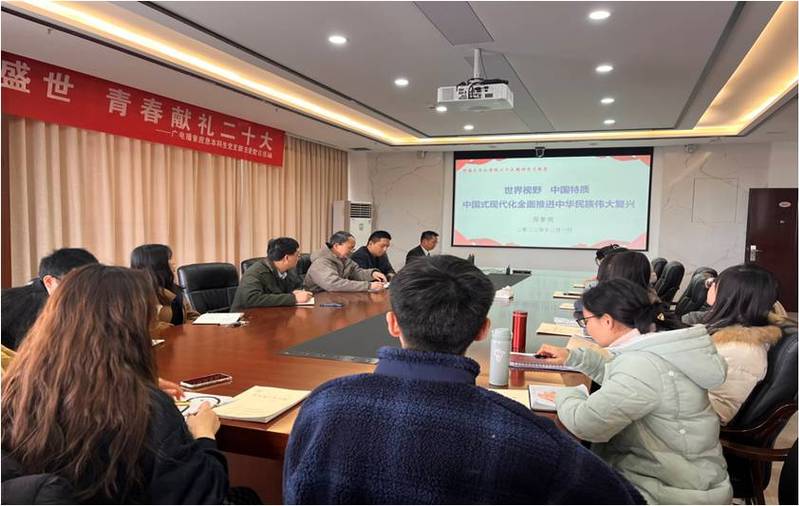 郑黎明副教授以“世界视野 中国特质——中国式现代化全面推进中华民族伟大复兴”为题讲授专题党课,从“二十大报告阐述中国式现代化的逻辑主线”、“国际比较视野彰显中国式现代化理论特质”和“推进民族复兴实现中国式现代化世界意义”三个方面的内容进行重点讲解和深入解读。