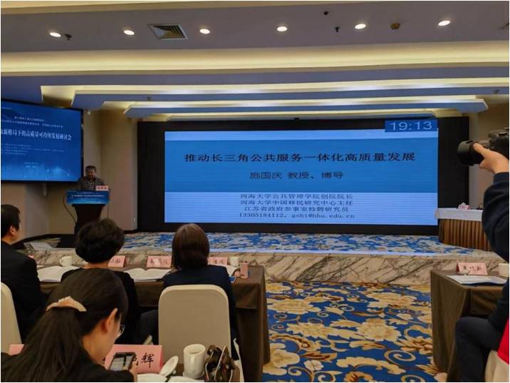 施国庆教授围绕《推动长三角公共服务一体化高质量发展》进行大会主场报告,对长三角地区公共服务发展现状及存在的问题进行分析,提出长三角地区高质量公共服务一体化的实现路径。