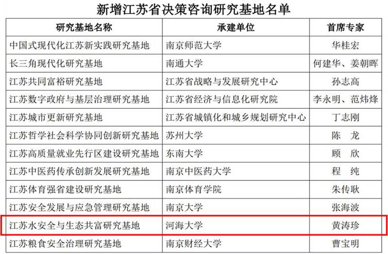 为深入学习贯彻党的二十大精神,围绕新时代新征程党的中心任务及其具体领域开展长期跟踪研究和决策咨询服务,省社科近日公布了新增江苏省决策咨询研究基地名单。依托我校,联合省水利厅、中国科学院申报的“江苏水安全与生态共富研究基地”成功入选新增的19家江苏省决策咨询研究基地。该研究基地的获批是我校多年来致力“顶天立地”战略,扎实推进基地建设、主动服务政府和社会的标志性成果,也是我校公共管理、应急管理、社会学等多学科交叉协同与品牌建设的重要成果。