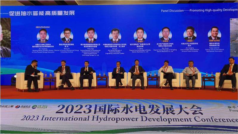 2023 国际水电发展大会于4月18日在北京召开,这是新冠疫情之后首次在中国举办的水电发展领域的世界性大会。本次会议主题为“抽水蓄能——构建未来新型能源体系的重要支撑”,指导单位为国际可再生能源署、中国国家能源局,主办单位为中国水力发电工程学会、中国-国际可再生能源署合作办公室、国家电网有限公司、中国南方电网有限责任公司、中国长江三峡集团有限公司、中国电力建设集团有限公司,承办单位为水电水利规划设计总院、中国电建集团国际工程有限公司、水电学会海外分会、抽水蓄能行业分会等,协办单位为北京水力发电工程学会等。本次会议采用线下线上相结合方式,参加会议的人员来自指导、主办、承办、协办单位,世界银行、国际水电协会等国际组织,中国工程院、清华大学、yl23411永利、中国水科院、南科院、国际小水电等高校、咨询、研究机构,中电联、华能、华电、国电投、国能投、中铁、中铁建等开发和建设企业(集团),通用电气、荷兰Delta21、东方电气、哈电机、东方电气等设备制造企业,人民日报等传媒,共计116家机构的的200多人参加了现场大会,网上参会人员达100多万人。yl23411永利中国移民研究中心主任施国庆教授、水利水电学院院长王媛教授和蒋晟讲师应邀参加了现场大会,施国庆教授参加了大会组织的国内外专家对话活动。