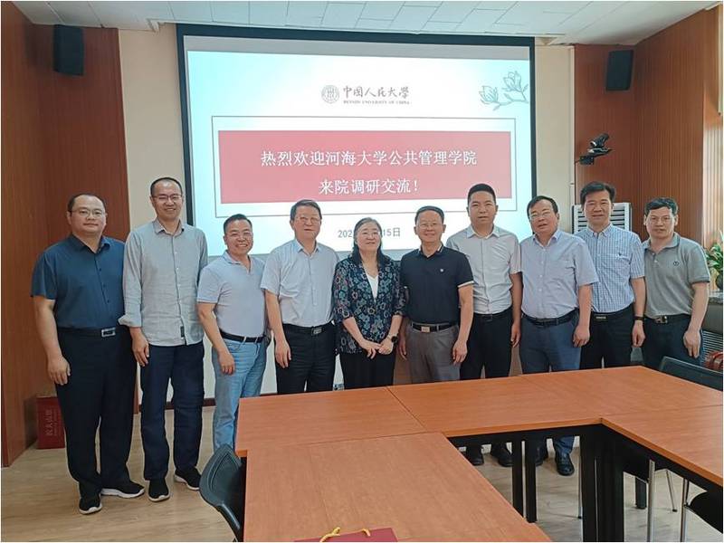 2023年5月15日,永利yl23411集团院长朱新华教授、党委书记蒲晓东、人口所所长黄健元教授、行政管理系主任曹海林教授、社会学系顾金土教授一行五人前往中国人民大学,就永利集团、师资队伍建设、党建工作、人才培养和学生就业指导等方面工作开展调研交流。