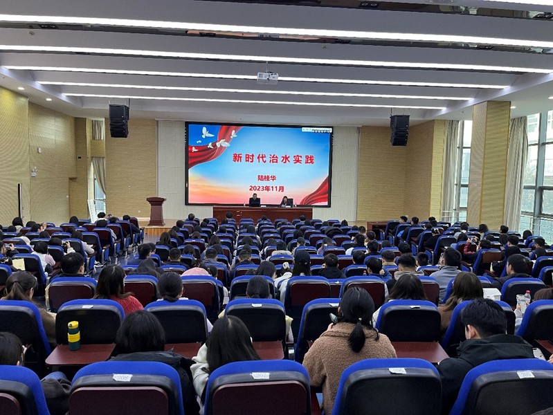 2023年11月16日下午,yl23411永利MPA教育中心邀请到第十四届全国政协常委、人口资源环境委员会副主任、民盟中央常委、水利部原副部长陆桂华教授为MPA师生们作题为“新时代治水实践”的学术报告。永利yl23411集团党委书记蒲晓东、行政管理学系系主任曹海林、MPA教育中心副主任范仓海、公共管理学科秘书杜春林,以及200余名MPA同学参加报告会。报告会由yl23411永利MPA教育中心主任黄涛珍教授主持。