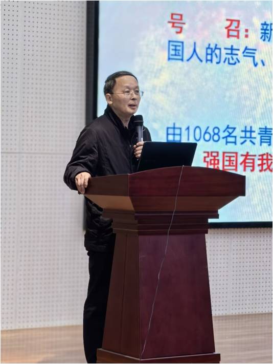 11月29日,公管院党委书记蒲晓东以《坚定理想信念 厚植家国情怀 做一个有担当有作为的新时代青年》为主题,为公管院全体2023级新生开展了一堂意义深重的理想信念公开课。