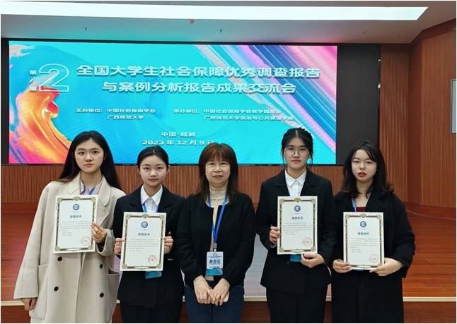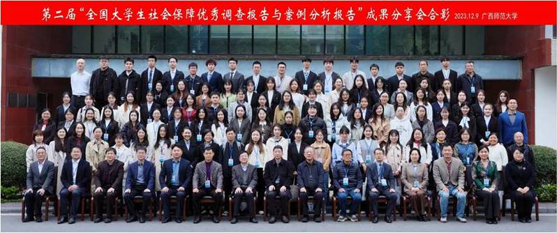 2023年12月9日,响应党中央有关大兴调查研究之风的要求,为促进社会保障学科发展,由中国社会保障学会、广西师范大学主办,中国社会保障学会教学委员会、广西师范大学政治与永利yl23411集团承办的第二届“全国大学生社会保障优秀调查报告与案例分析报告成功分享会”在广西师范大学成功举办。我院社会保障系主任韩振燕教授、劳动与社会保障专业2021级本科生陈莉、吴佳斌、邓美玉和数学学院闵芷瑞同学应邀前往广西师范大学参加会议。