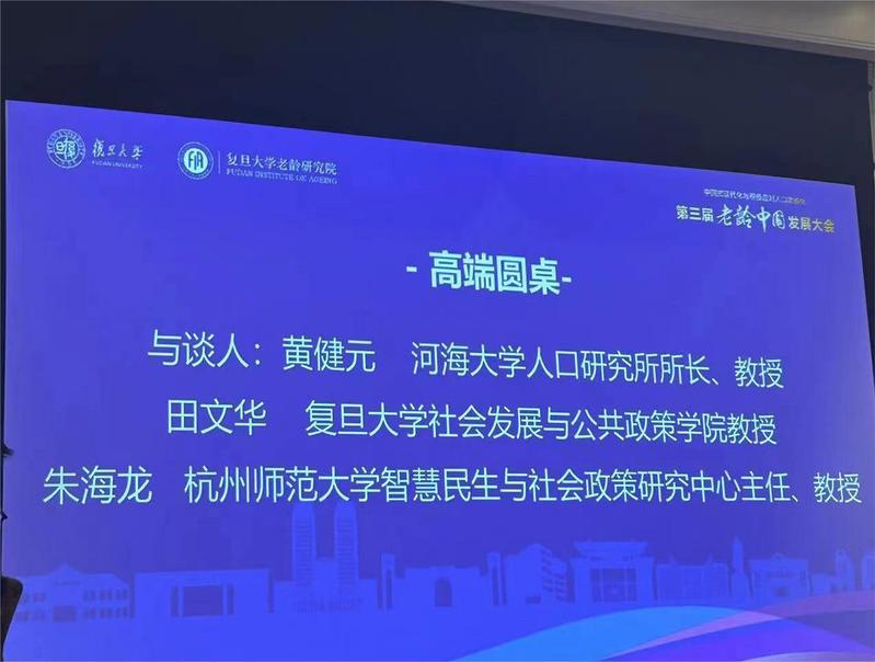 2023年12月17日,由复旦大学老龄研究院主办、复旦大学人口研究所协办的第三届老龄中国发展大会在上海举行。论坛以“中国式现代化与积极应对人口老龄化”为主题,国内老龄研究领域的专家学者、政界及业界代表齐聚复旦大学,深入探讨如何采取更加科学、精准和高效的策略应对人口老龄化,以推动中国式现代化建设。我院黄健元教授、韩振燕教授、张丹博士参加了本次大会。