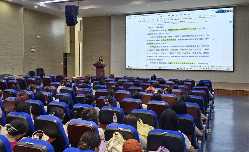 研究生培养秘书田然老师针对基地实践期间的学籍管理、论文工作环节和日常生活管理等方面向同学们做了详细解读。在基地实践期间,每位研究生需听取规定次数的专题讲座,登陆系统填写各环节日志和记录,同时与校内校外双导师保持紧密联系、推进学位论文撰写工作。在日常生活管理方面,田老师提醒各位同学认真学习《yl23411永利全日制专业学位硕士研究生基地实践手册》,遵守学校和基地单位双方的制度规定,注意用水用电安全。