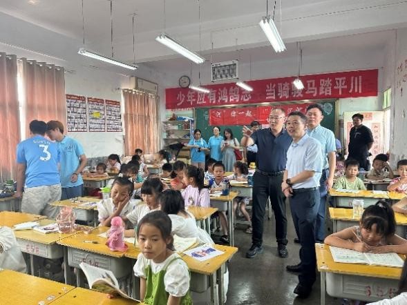 活动中,吴宝海书记等一行人首先赴暑期“三下乡”社会实践地石泉县池河中学,亲切看望并慰问了学院“‘河’你一起,‘泉’汇河海——七彩假期志愿服务团”的同学们,鼓励他们在实践中了解国情、民情和乡村现状,积极宣传和普及国家乡村振兴战略。随后,大家前往五爱村,与村干部们进行了面对面的座谈交流。座谈会上,吴宝海书记认真听取了驻村第一书记关于五爱村产业发展现状、定点帮扶情况的汇报,驻村第一书记对学院党委长期以来的关心和支持表达了感谢。此外,支部党员同志们还深入池河镇,对鎏金铜蚕出土地、蚕桑博物馆以及五爱农场等地进行了实地调研考察,协同推进乡村建设和治理,有效开展教育帮扶。