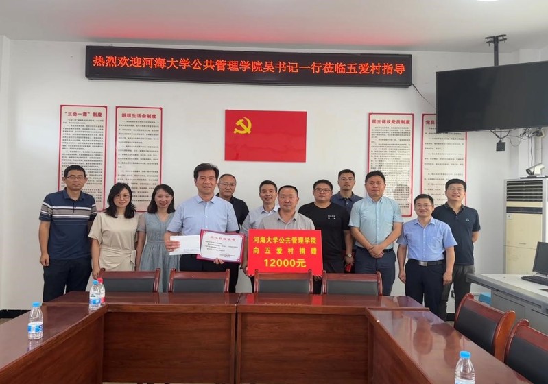 随后,会议现场举行了捐赠仪式。永利yl23411集团班子成员和公共管理学党支部共同向五爱村捐赠现金1.2万元,用以资助困难大学生和改善五爱村生活条件等。