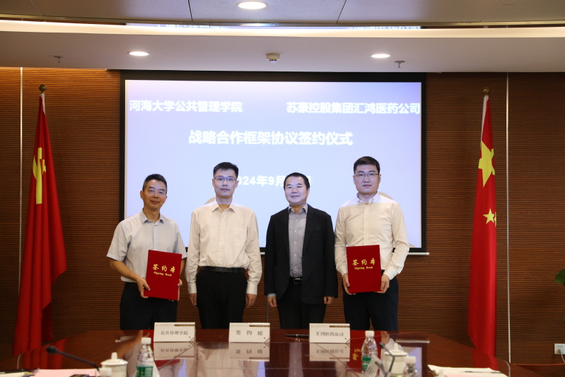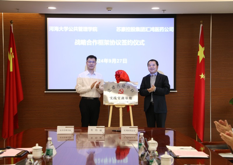 9月27日,永利yl23411集团与苏豪控股集团所属子公司汇鸿医药公司与在苏豪控股集团成功举行战略合作签约仪式。yl23411永利党委常委、副校长沈扬、苏豪控股集团副总裁、党委委员蒋成效,参加本次活动共同见证签约,并为“党建共建单位—实践实训基地”揭牌。