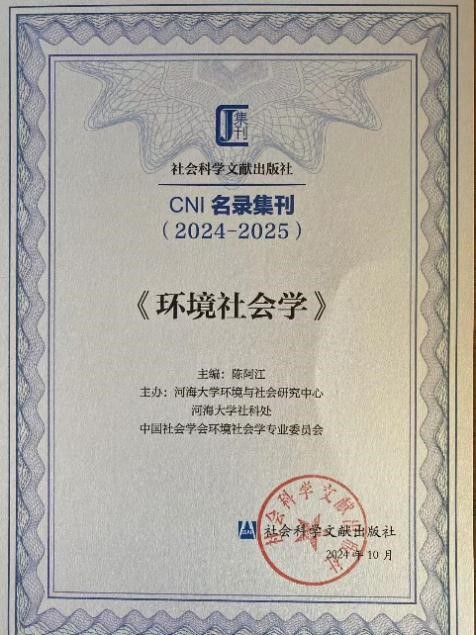 2024年11月18~19日,由社会科学文献出版社及云南大学联合主办的第十一届人文社会科学集刊年会在云南昆明召开。本届年会主题为“中国式现代化与学术集刊的使命担当”,来自中国社会科学院、社会科学文献出版社、国内外高校及科研机构等单位的专家和代表,各学术集刊的主编、编辑部代表等莅临参会。会议公布了2024-2025年社科文献CNI名录集刊名单和2024年度优秀集刊、优秀新创集刊名单。《环境社会学》集刊再次获评CNI名录集刊。