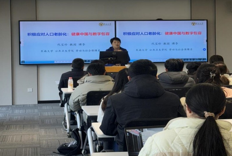 2025年1月3日下午,河海社科大讲堂“积极应对人口老龄化:健康中国与数字包容”在江宁校区厚学楼210教室顺利举行。本次大讲堂邀请到了东南大学劳动与社会保障系主任代宝珍教授担任主讲嘉宾。永利yl23411集团副院长陈涛教授主持,永利yl23411集团社会保障系、人口研究所教师,研究生和本科生约八十余人参加了学术活动。