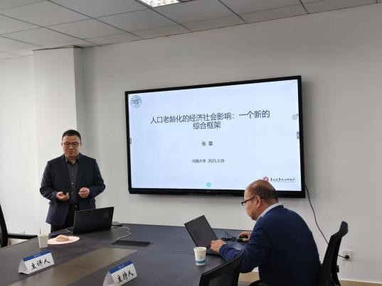 2025年3月28日上午,河海社会学论坛第二百二十五期于厚学楼909会议室如期举行。复旦大学人口研究所所长、人口发展与公共政策研究中心副主任张震教授受邀为我院师生做题为“人口老龄化的社会经济影响:一个新的综合框架”的学术报告。报告会由我院人口研究所王欢老师主持,黄健元老师、王毅杰老师、石德生老师、秦贤宏老师、闫东升老师、张丹老师以及众多博/硕士生参加了报告会。